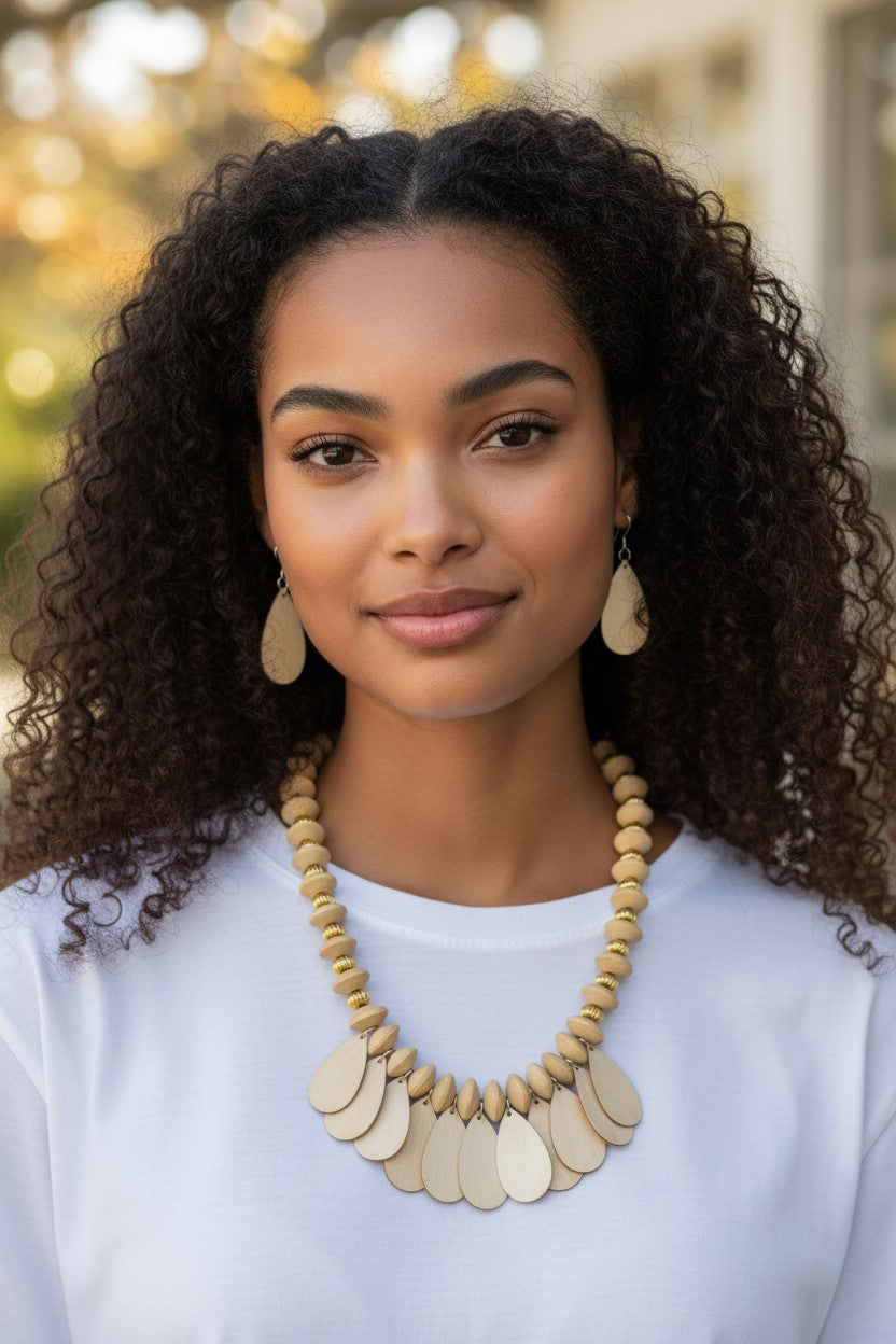 • Load image into Gallery viewer, Necklace Earring 2 Pc. Set Oak Wood